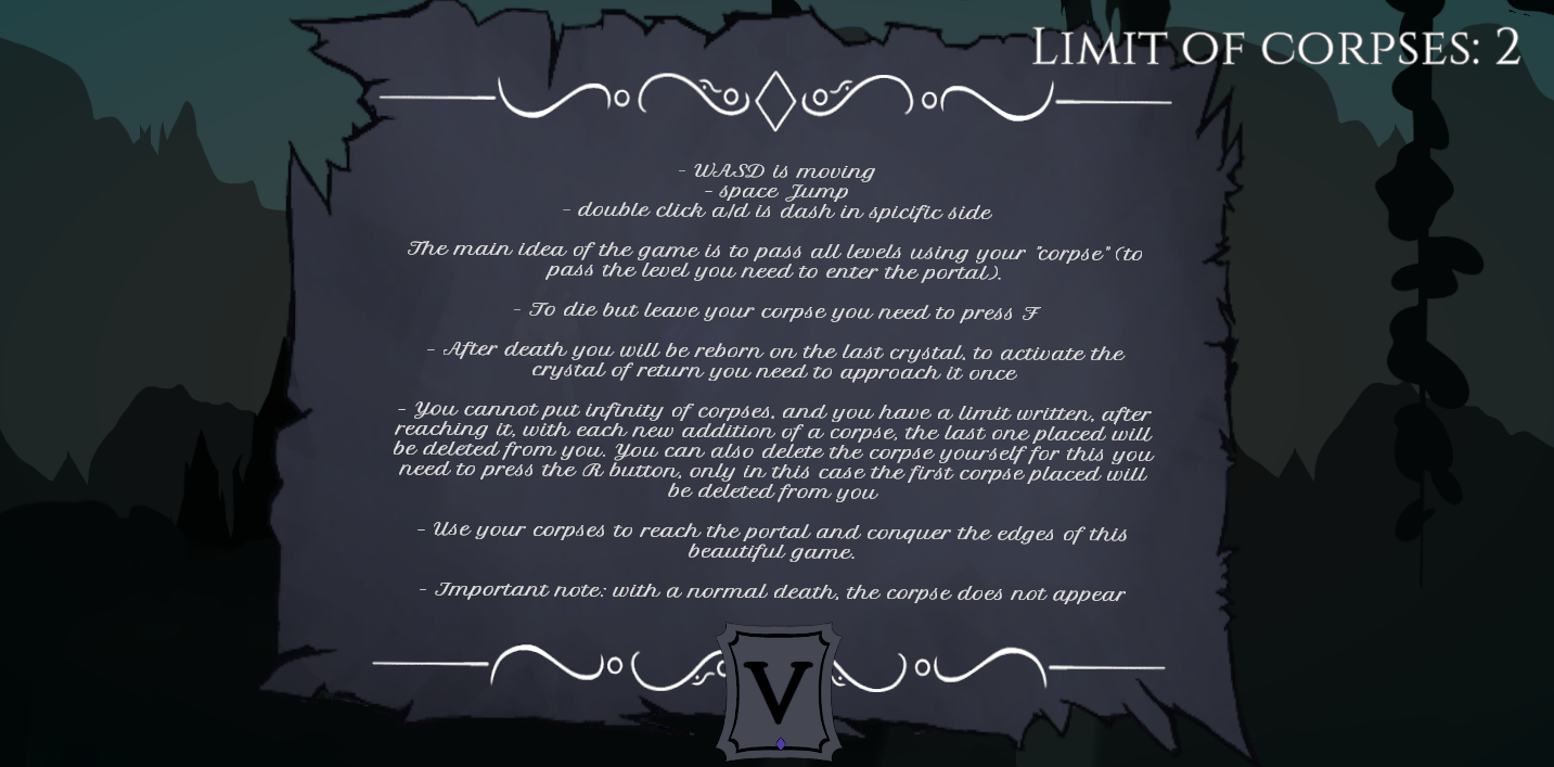 - To delete last corpse press R. To restart level T.